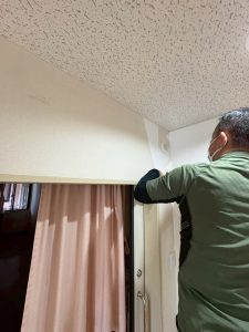 現在は既存クロスを剥がし、下地の補修をしている段階。